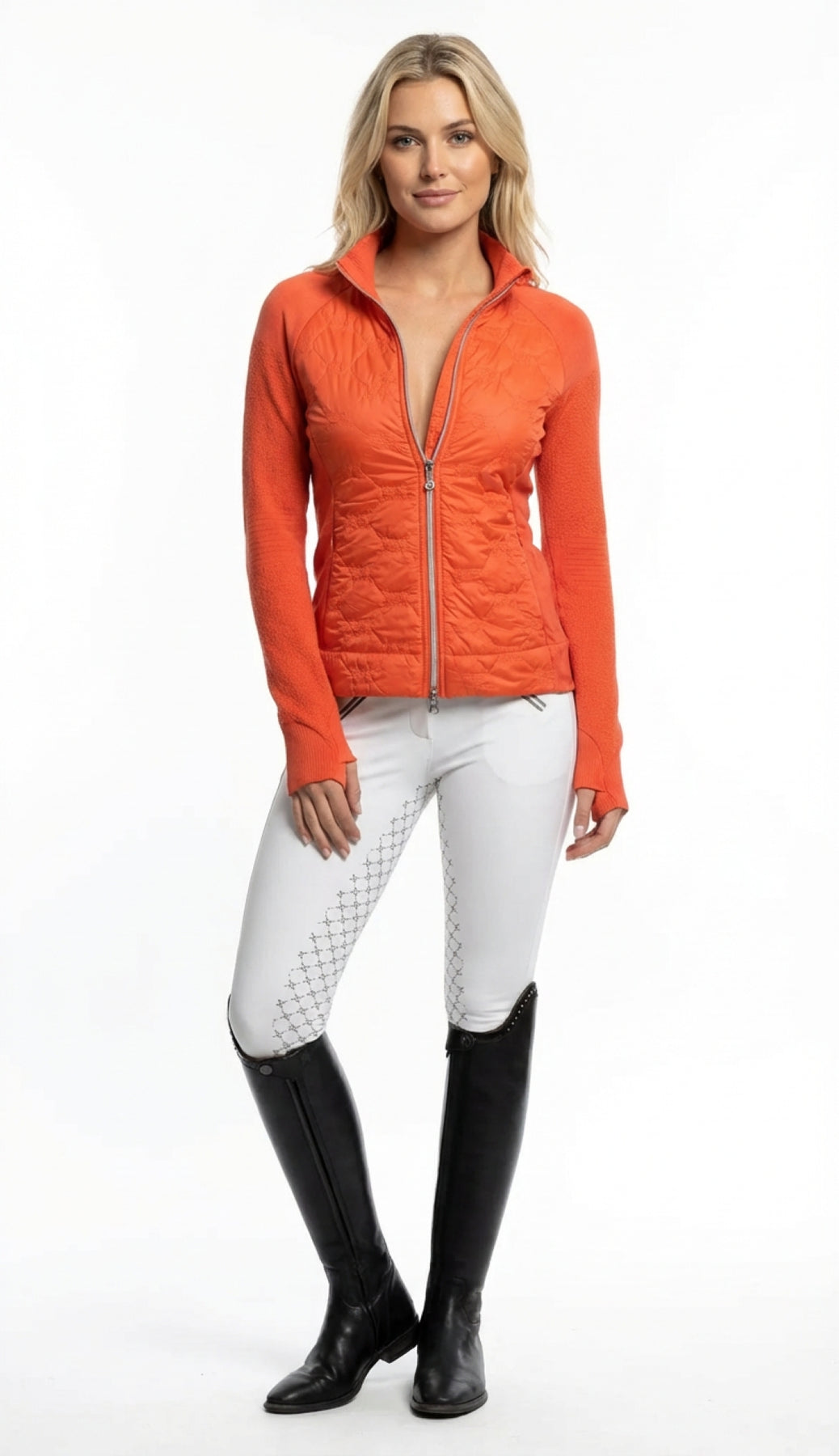 This Versatile Show Coat takes you from Dressage to Jumping to Eventing and after Your Show Simply Zip in the Hoodie and Go out to Dinner. Comes with 3 Interchangeable Show Dickies. If one gets Dirty at Show, Zip in Another. In a New Modern, Sleek, Flattering Silhouette the Coat Features Reflective Zippers and Pretty Fleur De Lis Buttons. A Double Vented Back ensures a Perfect Fit. Machine Washable.